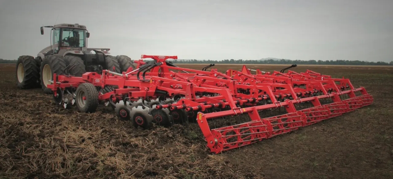 Použitý stroj, rok výroby 2024. Pracovný záber 630 cm, celková šírka 300 cm, ring packer valec, 13 radličiek, 26 diskov, vzduchové brzdy