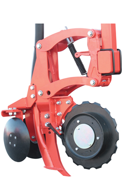 Každá sekce je umístěna na paralelogramu s možností nastavení přítlaku, pro aplikaci i v těžkých podmínkách. Čelní ozubený disk prořízne vrchní vrstvu půdy a tím usnadní vstup aplikační radličky. Jednoduchý systém nastavení hloubky (5-15cm) aplikace digestátu pomocí čepů. Zadní vypouklé disky slouží k finální úpravě půdy a zahnutí